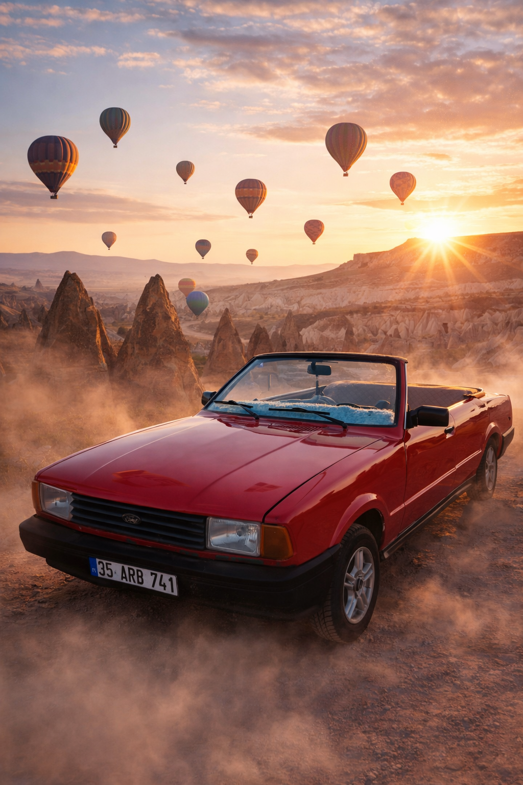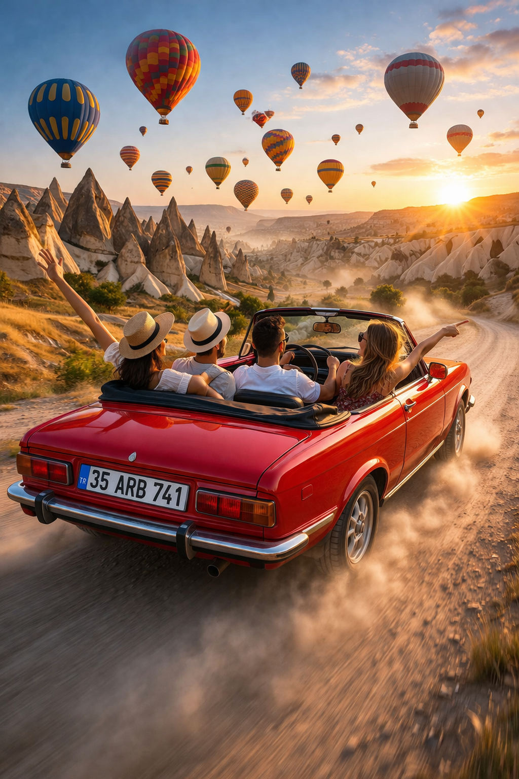 Kapadokya'nın en gizli noktalarını, rüzgarı saçlarınızda hissederek, klasik bir üstü açık arabayla keşfedin...