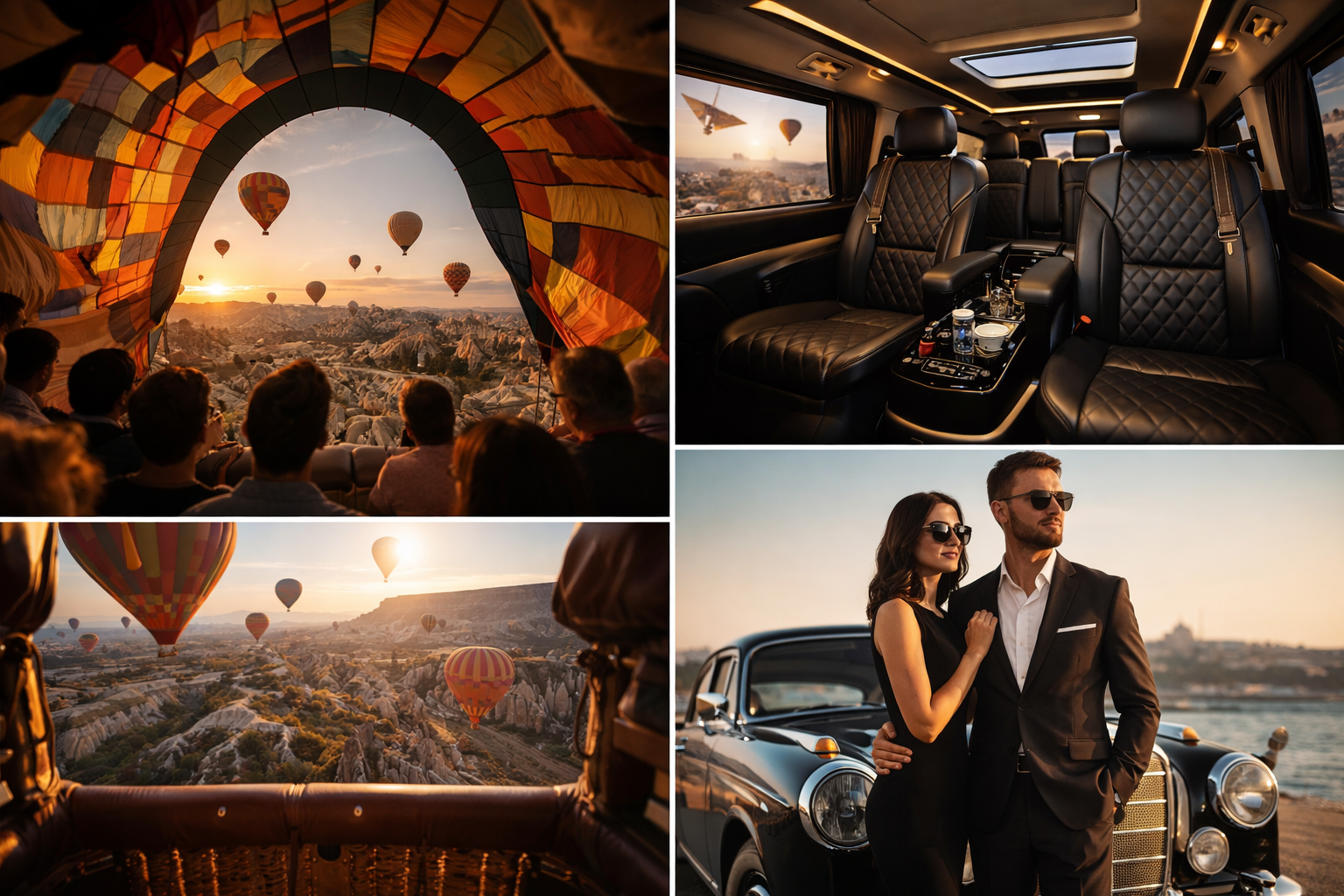 Gün doğumunda sıcak hava balonlarının gökyüzünü renklendirdiği o efsanevi anlarda veya gün batımının vadileri kızıla boyadığı saatlerde, üstü açık klasik araçlarımızla peri bacalarının arasında süzülün. Kırmızı Vadinin gizli yollarından Aşk Vadisinin panoramik tepelerine kadar her anınız, profesyonel şoförlerimiz eşliğinde konforlu bir sinema sahnesine dönüşecek. Yalnızca bir ulaşım değil; stil, nostalji ve Kapadokya’nın büyüleyici ruhunu birleştiren, fotoğraflarınızı birer sanat eserine dönüştürecek premium bir deneyim sizi bekliyor.