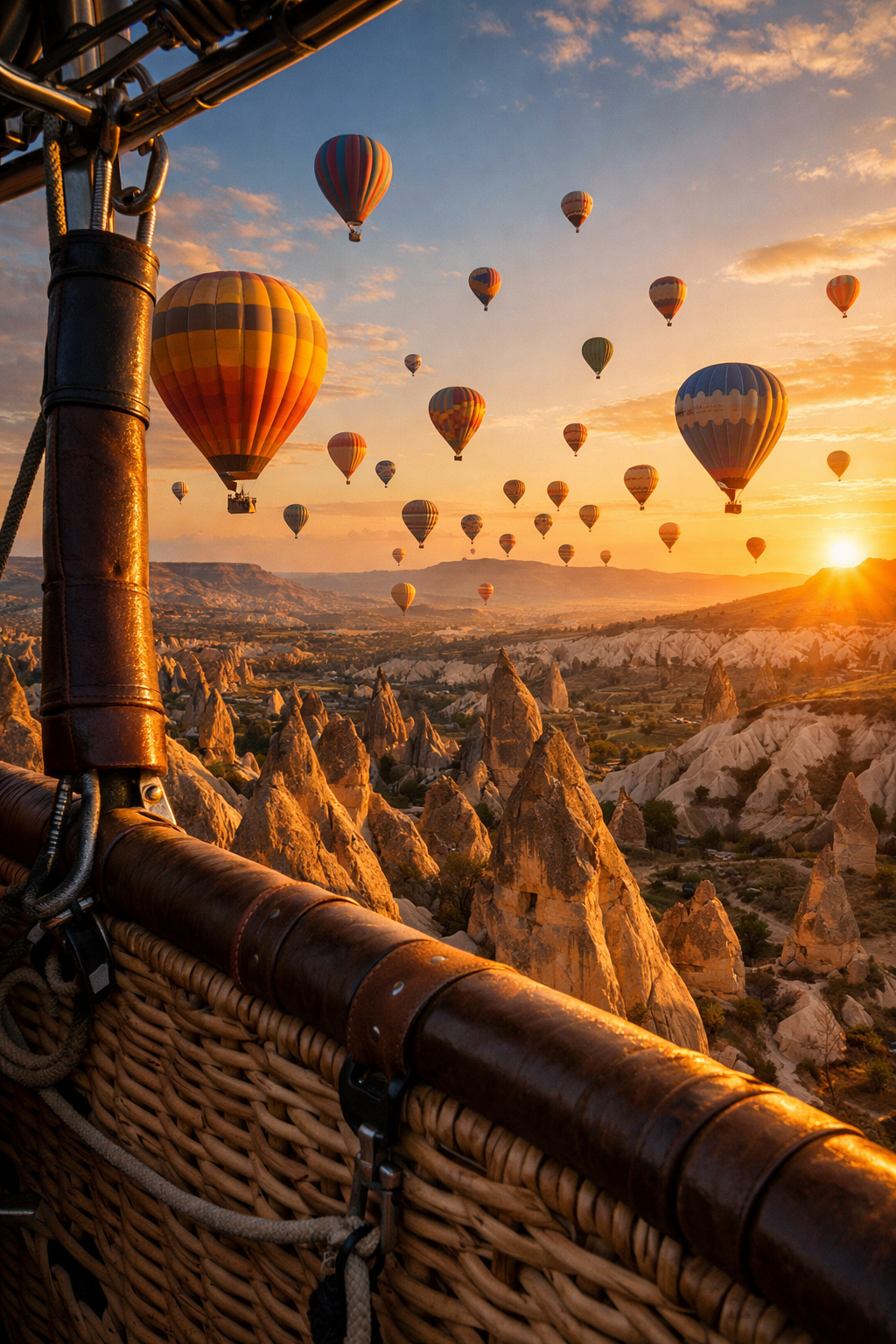 Kapadokya’nın eşsiz dokusunu, dünyanın en prestijli sıcak hava balon turlarıyla keşfedin. Gün doğumunun ilk ışıklarında peri bacalarının üzerinde süzülürken, hayatınız boyunca unutamayacağınız anılara şahitlik edeceksiniz. Profesyonel pilotlarımız eşliğinde, güvenli ve lüks bir uçuş deneyimi sizi bekliyor.